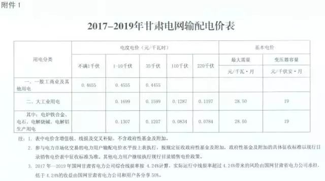 1、2017-2019年甘肅電網(wǎng)輸配電價表