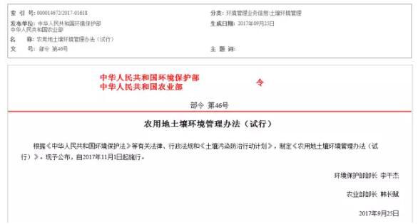 將于11月1日起施行的《農(nóng)用地土壤環(huán)境管理辦法(試行)》規(guī)定,禁止在農(nóng)用地排放、傾倒、使用污泥、清淤底泥、尾礦(渣)等可能造成對(duì)土壤污染的固體廢物。
