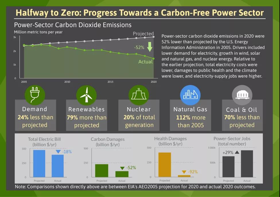 【回顧】美國電力行業(yè)2005-2020碳排放:當初的預測與實際結果對比驚人!