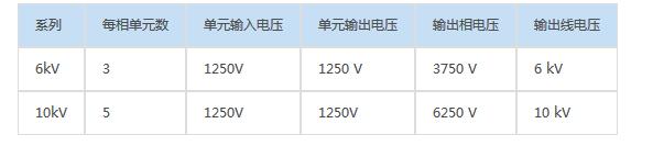 高壓電機(jī)節(jié)電系統(tǒng)根據(jù)電機(jī)額定電壓的不同,功率單元柜每相所串聯(lián)的個數(shù)也不同,6KV,10KV電壓與功率單元關(guān)系如下: