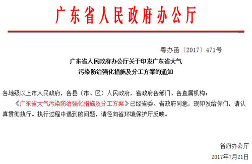 關(guān)于廣東省大氣污染防治強(qiáng)化措施及分工方案