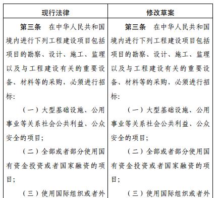 關(guān)于修改《招標(biāo)投標(biāo)法》《招標(biāo)投標(biāo)法實(shí)施條例》的決定(征求意見稿)和《招標(biāo)投標(biāo)法》《招標(biāo)投標(biāo)法實(shí)施條例》修改前后對照表的全文如下: