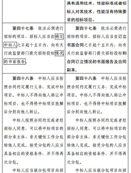 《中華人民共和國招標(biāo)投標(biāo)法》修改前后對照表