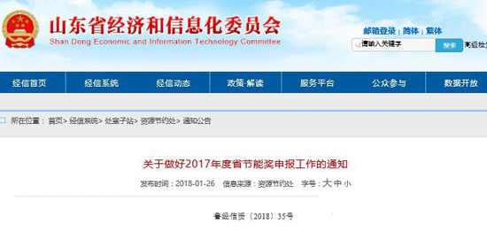 山東省啟動(dòng)組織開展2017年度省節(jié)能獎(jiǎng)申報(bào)工作