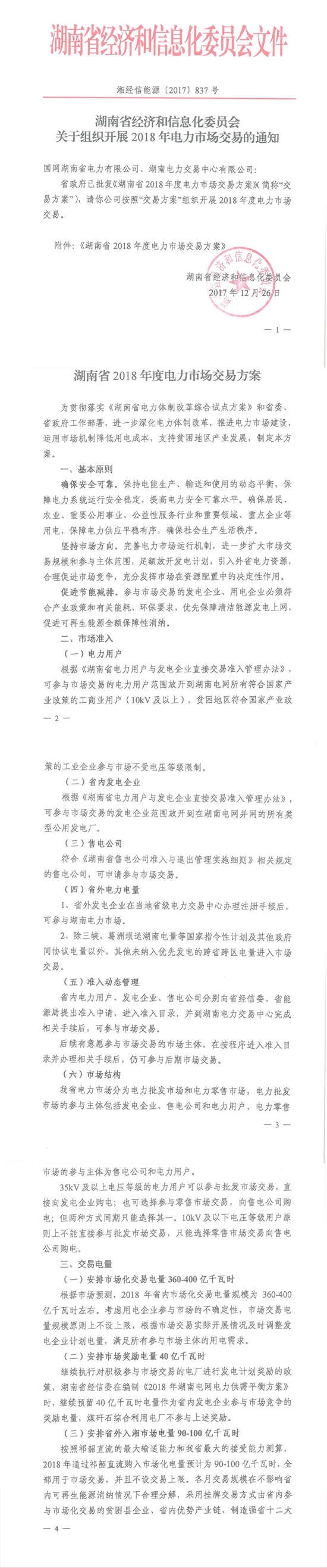 湖南省經信委發(fā)布:關于組織開展2018年電力市場交易的通知
