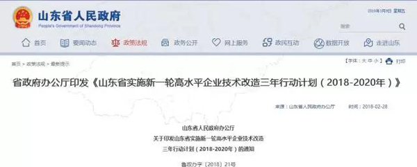 日前,山東省印發(fā)了《山東省實施新一輪高水平企業(yè)技術(shù)改造三年行動計劃(2018-2020年)》(以下簡稱“行動計劃”)。旨在充分發(fā)揮企業(yè)技術(shù)改造在推動工業(yè)轉(zhuǎn)型升級中的重要作用,促進(jìn)全省企業(yè)技術(shù)改造向更廣領(lǐng)域更高水平發(fā)展,加快推進(jìn)工業(yè)領(lǐng)域新舊動能轉(zhuǎn)換,實現(xiàn)制造強(qiáng)省建設(shè)目標(biāo)。
