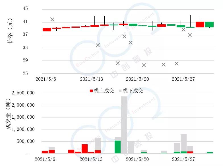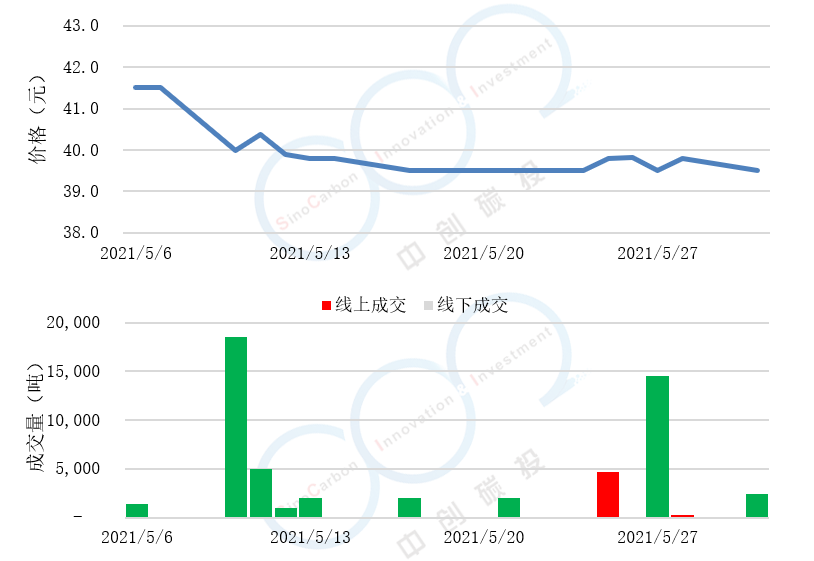 - 線上成交價最低為39.50元,最高為41.50元,平均碳價為39.93元。