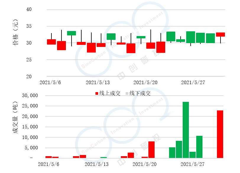 - 線下成交價最低為20.80元,最高為29.15元,平均碳價為24.99元。