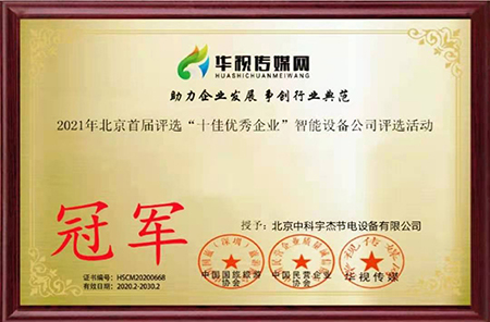 近日,2021年北京首屆評選“十佳優(yōu)秀企業(yè)”智能設(shè)備公司評選活動(dòng)圓滿落幕。此次評選活動(dòng)中北京中科宇杰節(jié)電設(shè)備有限公司摘得桂冠。