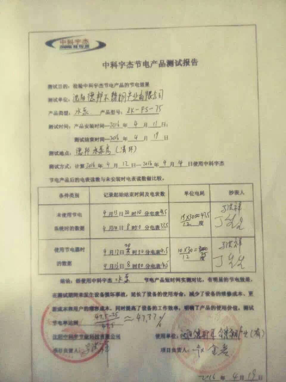安裝調(diào)試驗收,節(jié)能效率高達47.37%。節(jié)能設(shè)備安裝后,不但完全沒有對原設(shè)備造成不良的影響,還起到了延長設(shè)備壽命,減少維修成本的作用。該項目試點工程的節(jié)電效果顯著,得到了企業(yè)領(lǐng)導(dǎo)的一致認可。