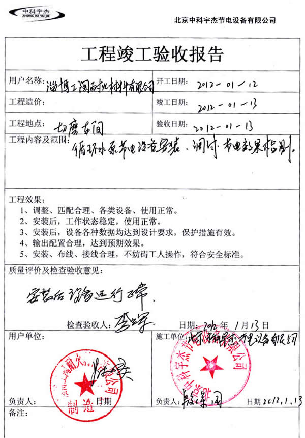 安裝調(diào)試并驗(yàn)收后,顯示節(jié)能效率達(dá)到27%,投資回報(bào)期1.5年,按質(zhì)保十年計(jì)算,此項(xiàng)節(jié)能工程能為淄博工陶耐火材料有限公司帶來160萬以上人民幣的直接效益。